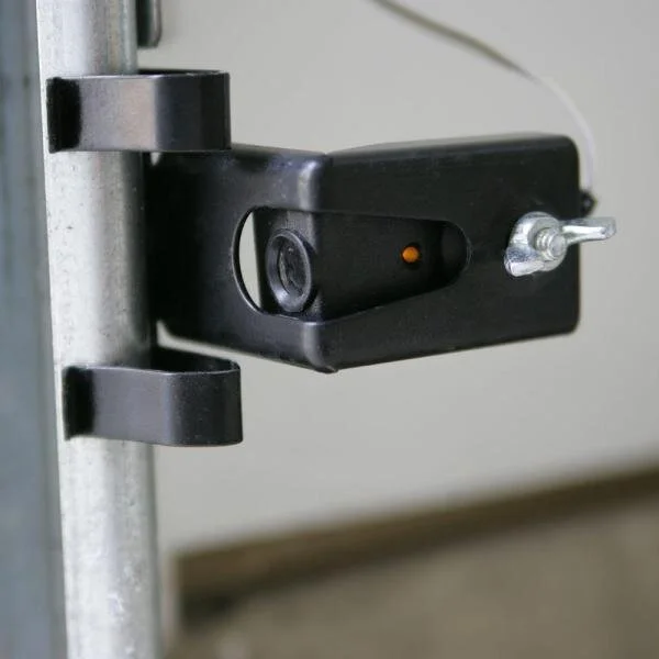 Safety sensors are the most important part of a garage door opener. They protect your family and pets from being hit by the door. They’re made of plastic, and are mounted to the wall or ceiling.